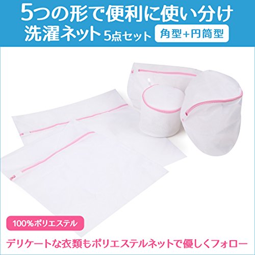 パッケージ内容:5種類の洗濯ネットセット(大型:4958.5cm、中型:3948.5cm、筒型:3020cm、四角型袋:262626cm、下着用:1614cm)