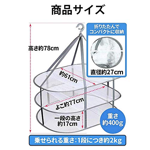 【衣類変形防止】平らに置くことで、重力を感じさせることなく干せるので、伸びたり型崩れしたりハンガーの跡したりしません【77cmのワイドサイズ!で何でも干せる】オープンすると長辺は77cmです。超ワイド仕様であらゆる洗濯物に対応します。ニット素材の物、セーター各種、ぬいぐるみ、枕、ドライでしか洗濯。