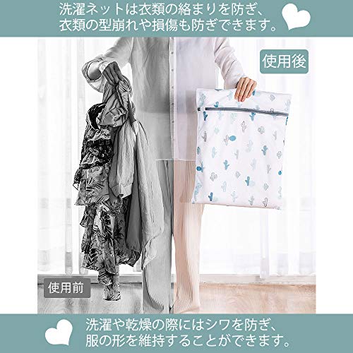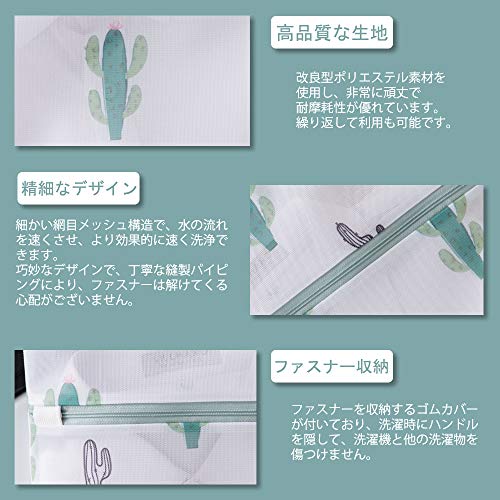 ?【オシャレなデザイン?便利に利用できる】弊社のこちらの製品は細かい網目のガードメッシュを採用した洗濯ネットです。縦横交織による台形状なメッシュ構造になっていて、網目が細かいが、水の滑らかな流れを妨げません。洗濯中に衣類の損傷を防ぎ、衣類の摩擦を減らし、洗浄力を発揮しながら、最大限に衣類を守ってくれます。サボテン絵柄、清潔感あるデザインで、落ち着いた色味と素材で可愛くなりすぎず、おしゃれな見た目がある。
