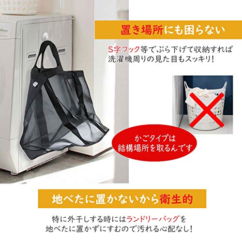 軽量メッシュ素材:通気性が良く、乾きやすいので衛生的。水洗いも出来ます。 長さ調節可能:ショルダーの紐は自分に合った長さに調節できます。 底面は防水生地:洗濯物の水分や汚れをサッと拭き取れます。