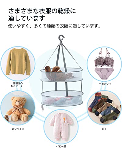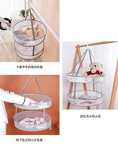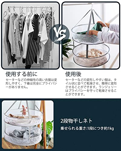 【衣類変形防止】amxus 物干しネットが、2段 折りたたみ コンパクト、平らに置くことで、重力を感じさせることなく干せるので、伸びたり型崩れしたりハンガーの跡したりしません。下着、ブラージャ、靴下、子供服、枕、ぬいぐるみなども楽々平干し、形良く簡単に乾かせます。大容量で、たくさん服などを干すことを実現します。服を洗濯した後に、干しかごに入れて干し、虫の侵入を防止し、洗濯物を保護して変形しません。