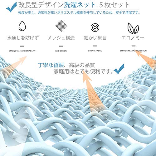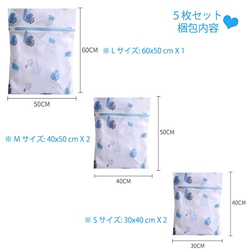 ?【セット梱包内容5枚】洗濯ネットセット5枚入。Lサイズ:6050cm×1、Mサイズ:5040cm×2、Sサイズ:4030cm×2。 複数のセーター、コート、ジャケット、ズボン、パンツ、下着、小物など洗濯できます。