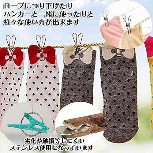 【多用途】衣類などをロープに吊り下げたりハンガーと一緒に使ったりするのに便利です。衣類だけでなく紙類や袋類などにもお使い頂けます。