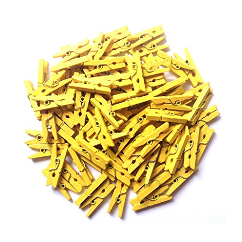 LWR CRAFTS工芸木製ミニ洗濯バサミ、2.5センチメートル長、15色、1パック100個(黄)