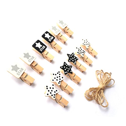 LWRの工芸品木製ミニ洗濯はさみ星24個とジュートコード2.4メートル