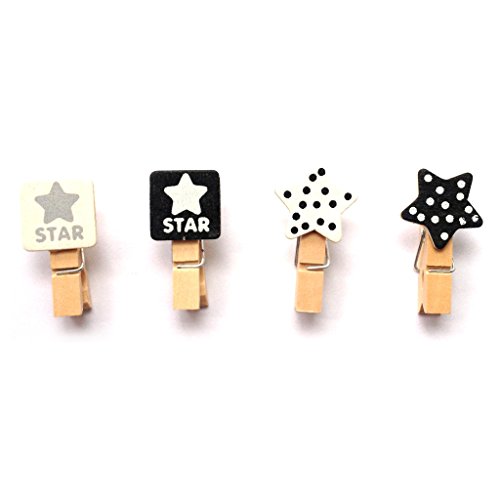 4つのスタイルの素敵なミニ洗濯はさみを含むパッケージ、それぞれのスタイルの洗濯はさみは6個、全部で24個の洗濯はさみと2 x 1.2メートルのジュートコードです。