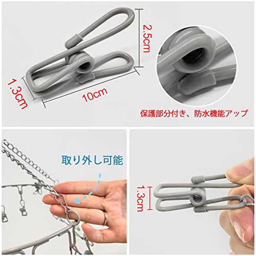 「頑丈、耐久性がある」防水、防錆材質に塗装されたおり、室外にもご使用できます。日焼けして壊れてしまうという心配はないです。錆びにくく丈夫なので、長期間、清潔・快適にお使いいただくことができます。ピンチが16個あり、一人用はぴったりです。