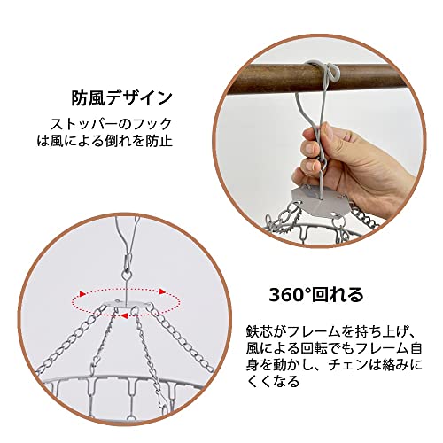 「防風設計、フック部分が361度回れ」ストッパーフック付きなの