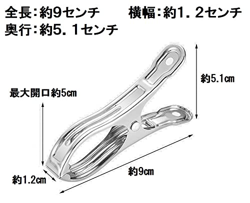 | 商品名 | ASK 中型ステンレスクリップ 洗濯ばさみ ピンチ 12個 錆びにくい 防風タイプ 洗濯用品 多用途 (12個, 6番A型(9cm)) |