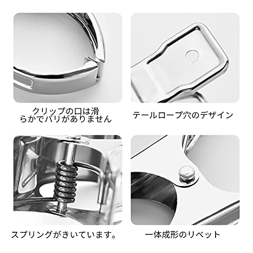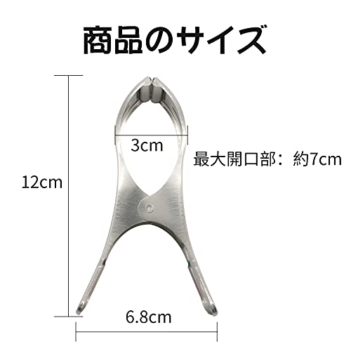 【商品詳細】4個セット 材質:ステンレス サイズ:全長12cm、持ち手幅 6.8cm、開口幅2.3cm、最大開口7cm