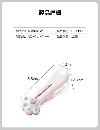 【セット内容】洗濯はさみ×12個【サイズ(約)】5.5CM×1.5CM、クリップ開口部:2.5CM【素材】PP +PET+メタルスプリングバックル