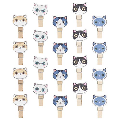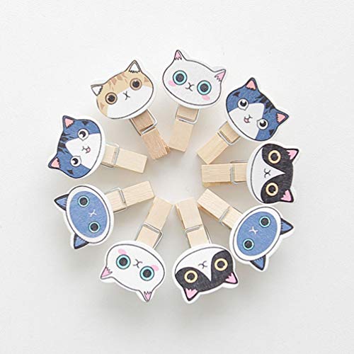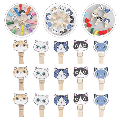 NUOLUX 木製クリップ ミニ フォトクリップ 猫 洗濯小物 写真用に 飾り付け DIY 手芸用 洗濯バサミ 木製ピンチ 30