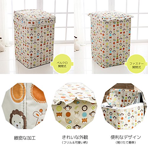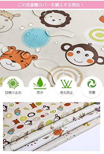IKENOKOI 洗濯機カバー 防水 防塵 日焼け止め 紫外線に強い 老化防止 外置き 上開き ベルクロ開閉式 (動物 L 56*58*