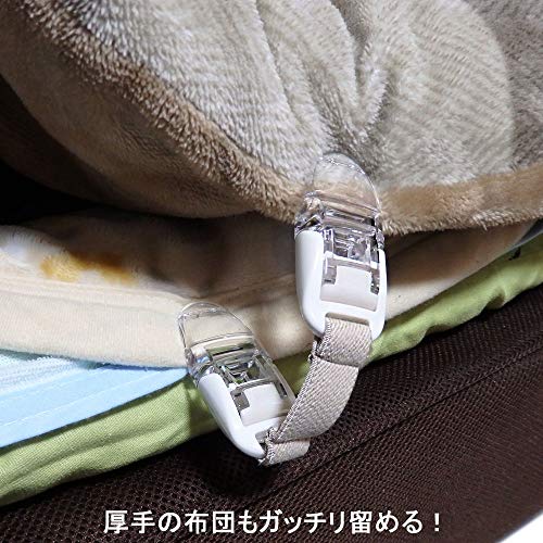 掛け布団と敷き布団、毛布と敷きパッドなど、お使いの仕様によってご自由に組み合わせてお使いください。 クリップはオール樹脂製なので、布地を傷め難く、万一眠っているときに体にあたっても優しく安心です。