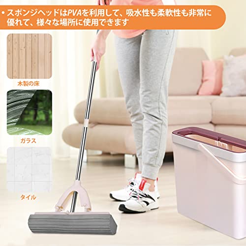 スポンジモップ 吸水モップ スポンジワイパー バケツ付き 伸縮可能 水拭きモップ 床掃除 吸水力 掃除モップ