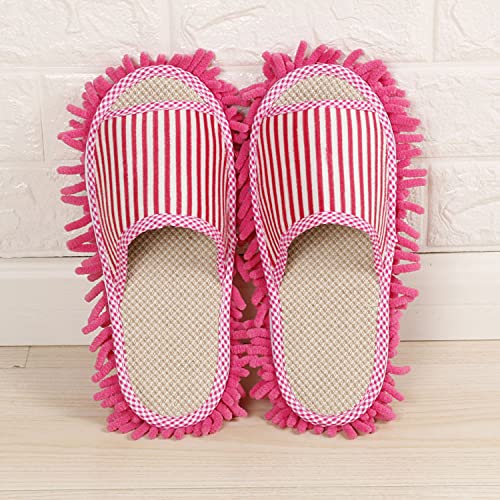 女性用モップスリッパ、レディースマイクロファイバー床掃除スリッパ 柔らかく快適 家のスリッパ (Fuchsia,S)
