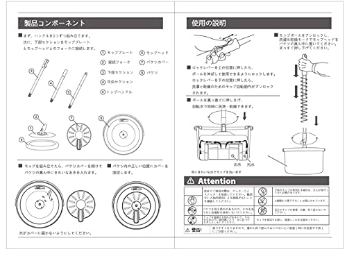 「セット詳細」:一槽式バケツ1個、組立必要なハンドル3本、パッド2個、取り扱い説明書1冊、ヘッド1個。材質:ステンレス(ハンドル)、ABS(バケツ)、マイクロファイバー・(パッド)
