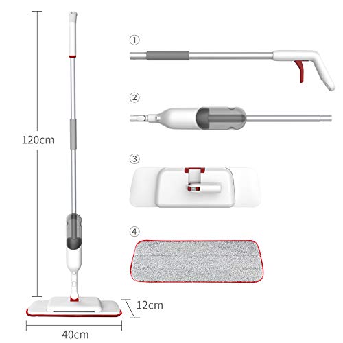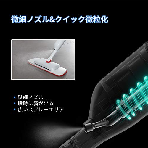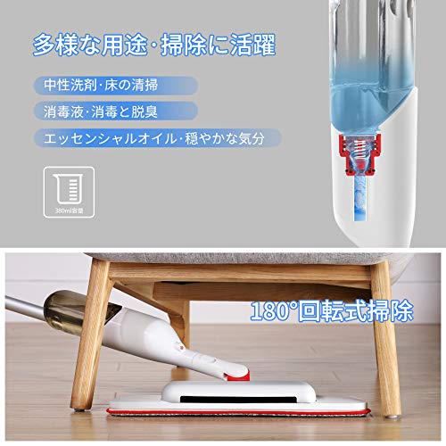 【水の節約&扇形スプレー】スプレー機能を搭載するフロアモップは380ml水タンクが付いており、ご都合に合わせて水や洗浄液などを入れて、モップヘッドの水出口から液体が霧状に出るので、簡単に水拭きすることができます。