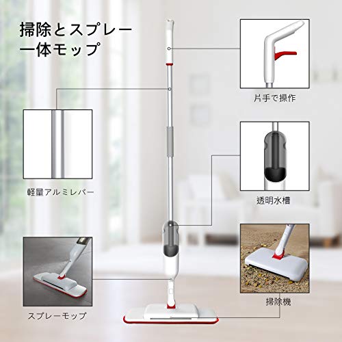 【掃除機&スプレー一体型】多機能モップは掃除機とスプレーモップを組み合わせて、収納スペースを節約し、掃除効率を高めています。最新のデザインで、楽々に掃除時代を迎えます。