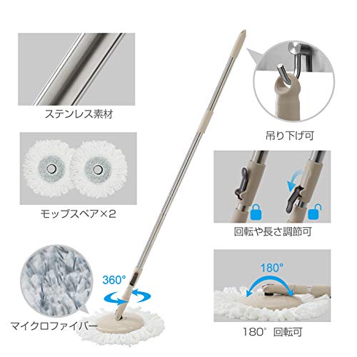 【いいデザイン】: バックルで使用者や掃除場所によりハンドルの長さは調節可能で腰を大変に曲げる必要なくお気軽に使用できます。バケツを分解して底部を洗うことができます。
