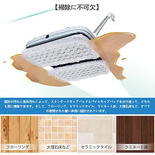 【掃除に不可欠】固形の汚れと液体汚れによって、スタンダードモップバッドとパイルモップバッドを分け使って、どちらも楽に掃除できます。そして、フローリング、セラミックタイル、ラミネート床、大理石床など、すべての密閉された硬い床用に設計されています。