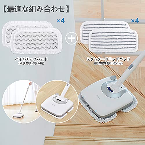 【最適な組み合わせ】スタンダードモップバッド(固体物を擦り取る用)×4 + パイルモップバッド(液状を吸い取る用)×4 合計8枚 素早く簡単に取り付けができ、道具は必要ありません。