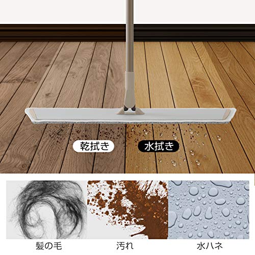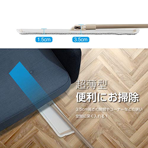 【いいデザイン】:ハンドルの長さ約82.5~132cm範囲で自由に長さ調節することができ、腰を大変に曲げる必要なくお気軽に使用できます。60cmのアルミ板が幅広くて、広い部屋でも余裕あり掃除が実現できて、床掃除の時間も節約でき