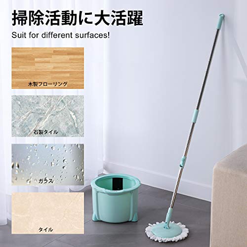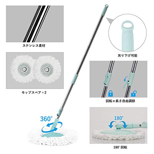 回転モップ Eyliden. フロアモップ フローリング ワイパー モップ回転 モップ絞り器 モップセット ミント クロ