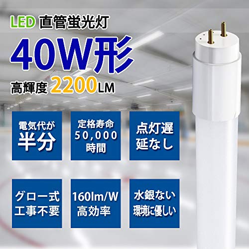 LED蛍光灯 直管 40w形 昼白色 5000k 消費電力14w led蛍光管 120cm 高輝度 2200lm 広配光 300°グロー式工事不要 直管蛍光