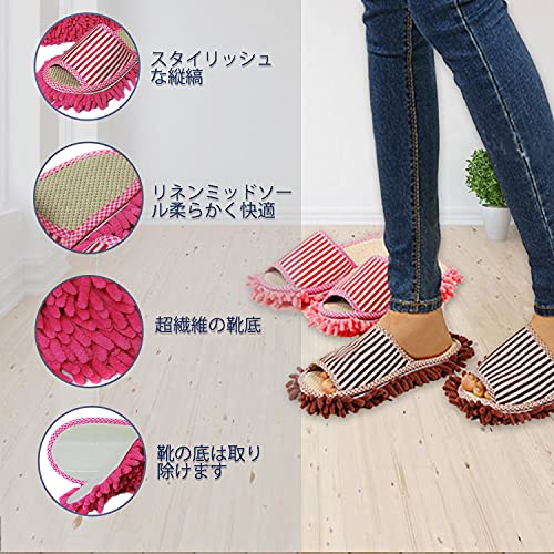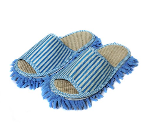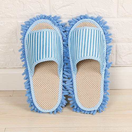 女性用モップスリッパ、レディースマイクロファイバー床掃除スリッパ 柔らかく快適 家のスリッパ (Blue,M)