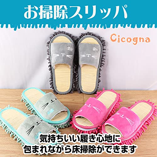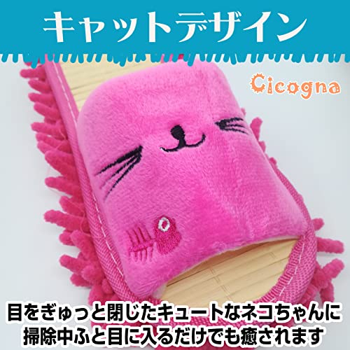 (Cicogna) 掃除 スリッパ モップ 猫 ネコ モチーフ 前開き マイクロファイバー 大掃除 おそうじ 時短 猫雑貨 猫グ