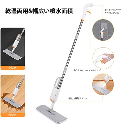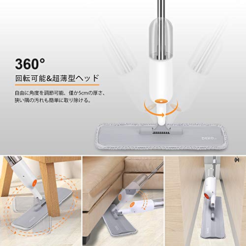 DEKOHM モップ フロアモップ 水拭きモップ スプレー 360度回転モップ 交換用パッド3枚付き フロアワイパー 床掃