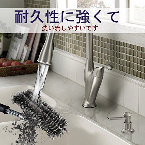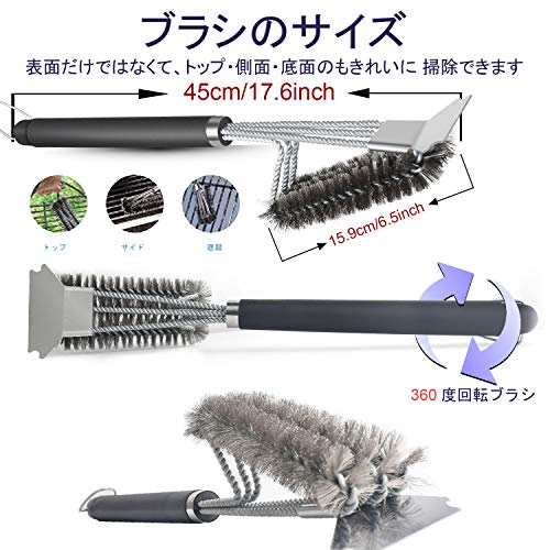 2.【360度回転ブラシ毛】:三角形の設計より、360度回転ブラシ毛はグリルの表面だけではなく、トップ・側面・底面、隅々まで綺麗に掃除できます。 ステレンス製の毛は変形にくいです、長く使用できます。
