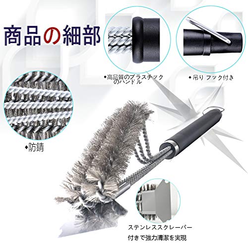 1.【焦げが取れやすい】:バーベキューをやった後のグリルの網の焦げ落としはとても結構面倒くさいところですが、ステンレス鋼材で制作されたこのブラシは、しっかりと鉄板・グリルの火格子等のコゲ付きやしつこい汚れを一気に豪快に落とせます。長年使ってもブラシの毛が落ちにくいです。