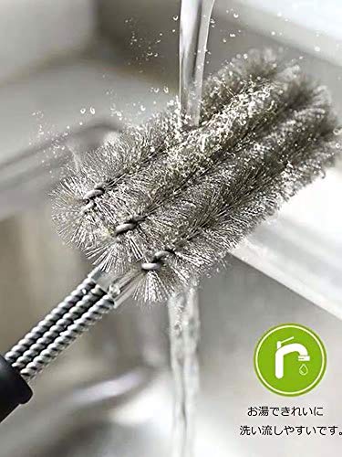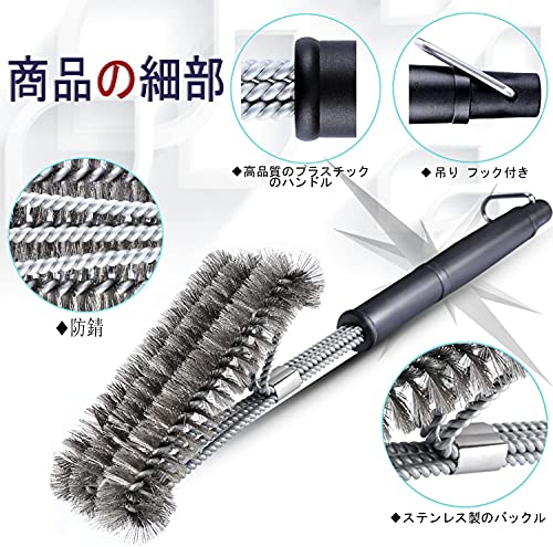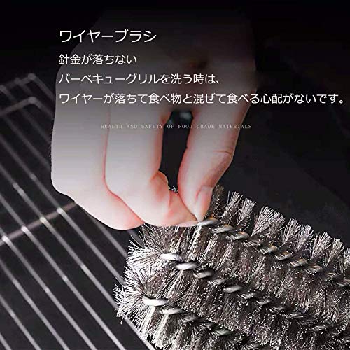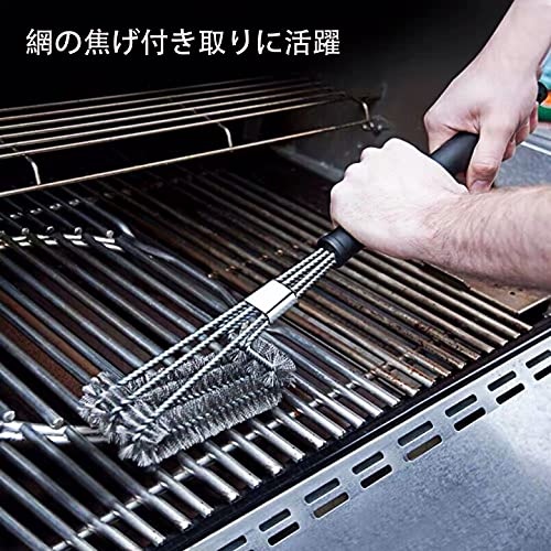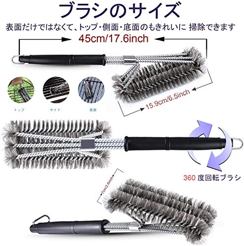 ??2.【360度回転ブラシ毛】:三角形の設計より、360度回転ブラシ毛はグリルの表面だけではなく、トップ・側面・底面、隅々まで綺麗に掃除できます。 ステレンス製の毛は変形にくいです、長く使用できます。