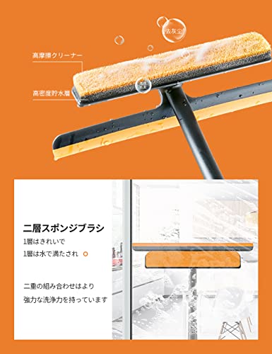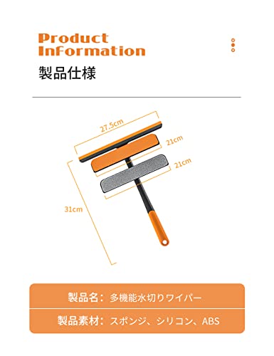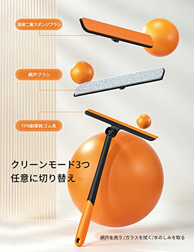 【三合一設計】これは多機能水切りワイパーで、本体はガラス水切りワイパーで、2つの取り外し可能なブラシヘッドがあり、オレンジ色のブラシヘッドはスポンジブラシで、ガラスを洗浄するために使用され、灰色のブラシヘッドはフランネルブラシです、網窓のほこりを掃除するために使用されています。