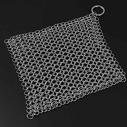 Andylies 鋳鉄クリーナー -プレミアム316ステンレススチールチェーンメールスクラバー、8x6インチ