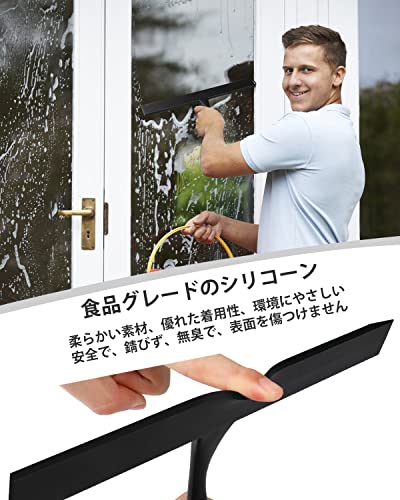 ?【食品グレードのシリコーン】:シリコーン材料で包まれたこのガラスドアスキージは、錆びず、長持ちし、無臭で、無毒で柔軟性があり、表面を傷つけません。また、表面がシームレスであるため、スキージには汚れや水のしみを隠す余地がなく、常に清潔に保ち、成形が容易ではありません。