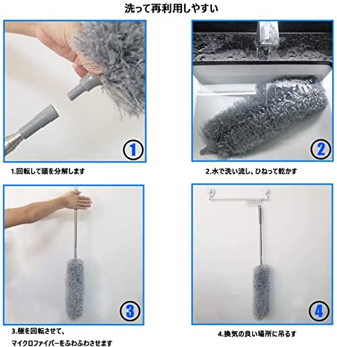 【高所 掃除】この伸縮式超細繊維クリーナーは完全に伸びた時で100インチに達することができるロングロッドを備えており、天井やクモの巣、壁、吊り上げ扇、照明器具などをきれいに掃除することができます。椅子や危険な梯子は二度と登ってはならない。