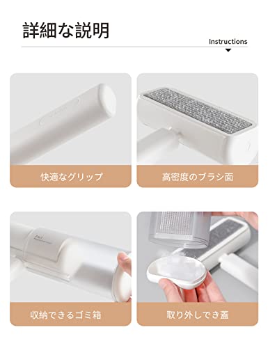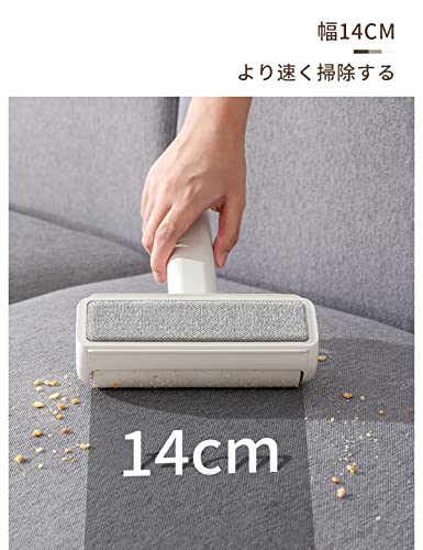 【1台2役多機能ブラシ】抜け毛ブラシと粘着クリーナーを併用設計されて2in1ほこり取りブラシです。正面はブラシの仕様して、一瞬でたくさんの毛を簡単に掃除できます。後ろ面は粘着式クリーナーのデザインで、ベッドやソファ、フローリングやカーペットなどに落ちた髪の毛やほこりが簡単にお掃除できます。