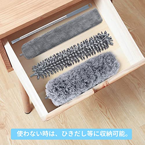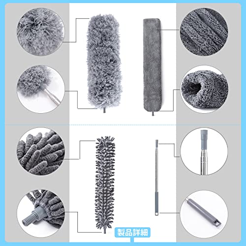 ?【ほこりを絡め取れ】三種類の掃除ヘッドで場所によってハンディモップのヘッドや245cm長さや360度を選択でき、高い所だけでなく狭い所も心地よく使用できています。繊細で、柔らかくて触り心地のいい素材で、床、壁や家具等に傷つかない。