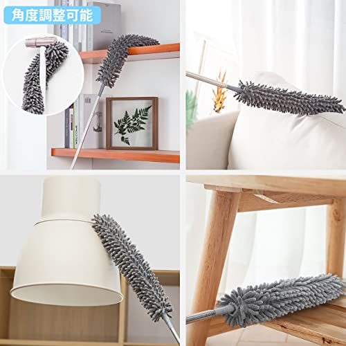 はたき ほこりとり 伸縮掃除モップ 曲がるモップヘッド 高所掃除 すきま掃除 マイクロファイバー 洗える エ
