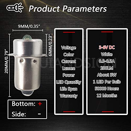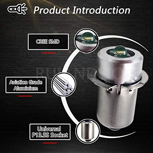Ruiandsion 1個 LED 電球P13.5S 懐中ライト交換用 DC 3V-6V 3V 4.5V 6V CREE LED豆電球