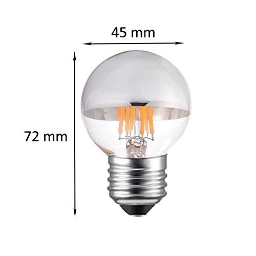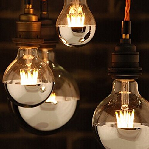 眩しさを軽減- 底部がシルバーの電球が、光を器具に跳ね返すので、頭上の裸電球からの眩しさを軽減します。ミラービンテージ調電球は、従来のエジソン電球に比べてほとんど熱を放出しません。