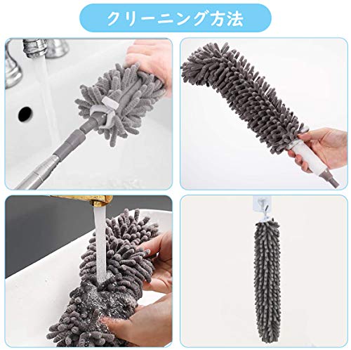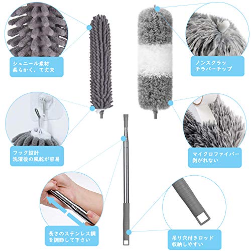 【2in1 超極細繊維&シェ二ール】このホコリ取りキットには、1マイクロファイバーモップヘッド、1シェ二ールモップヘッドと1ステンレスポールが含まれています。マイクロファイバーヘッドは、吸着性が強くて、軽く拭いて静電気を吸着できます。髪、糸屑、紙くず、花粉、ハウスダストやホコリ等が一瞬にキャッチして、取り除けます。シェ二ールヘッドは、柔らかくて、任意の表面に擦ったり、傷ついたりすることがありません。