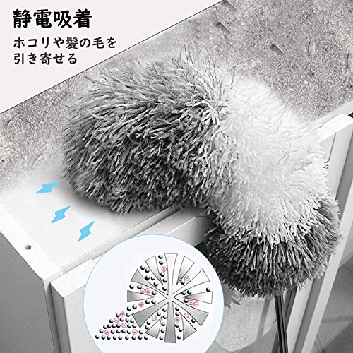 伸縮掃除モップ 最大250cm伸縮 高所掃除 ホコリ取り 高い所ハンディモップ ほこりとり 360°曲がるモップヘッド