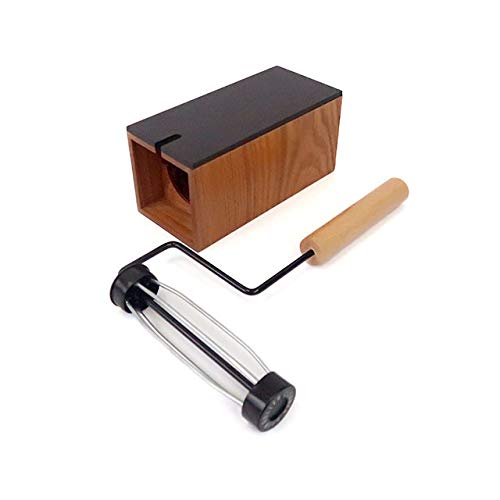 木目が美しいアッシュ素材の 粘着式クリーナーと木製ケーススタンドのセット ブラック ケース20×9×9cm 温か