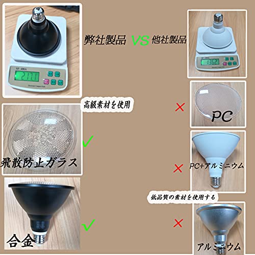 【防水性能】IP65の防水等級なので、屋内・屋外兼用 防塵・防湿・防雨型です。 水銀灯代代:PAR38 LEDでビームボールを完全再現!