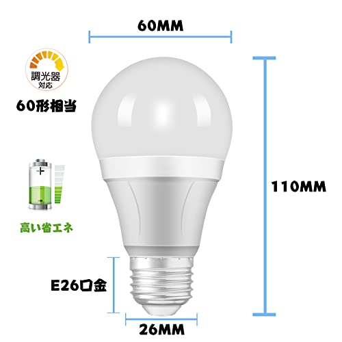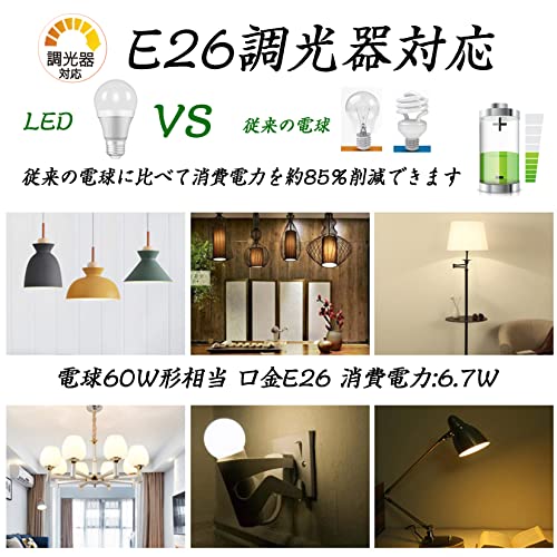 | 商品名 | LED電球 口金直径26mm 電球60W形相当 6.7W 昼光色相当 E26金 一般電球 広配光タイプ 調光器対応 密閉器具対応 高輝 |