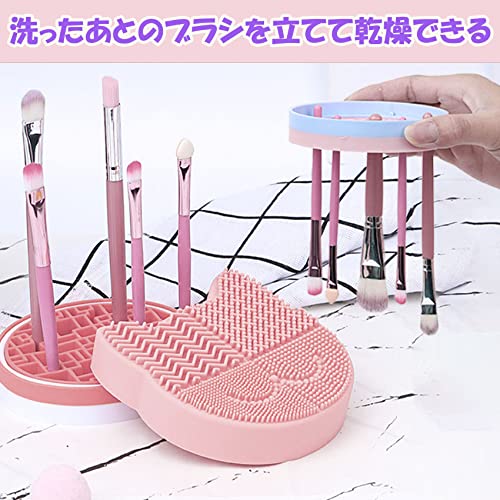 nijimomo メイクブラシ クリーナー 2個セット ブラシ洗浄 乾燥 ホルダー スタンド クリーニング (ピンク)